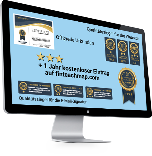 Nach erfolgreichem Seminarabschluss bekommst du das exklusive "Financial Excellence"-Zertifikat, das deine neu erworbene Beratungskompetenz dokumentiert. Außerdem wirst du zusätzlich für 1 Jahr kostenlos auf dem Portal finteachmap.com gelistet – denn...
